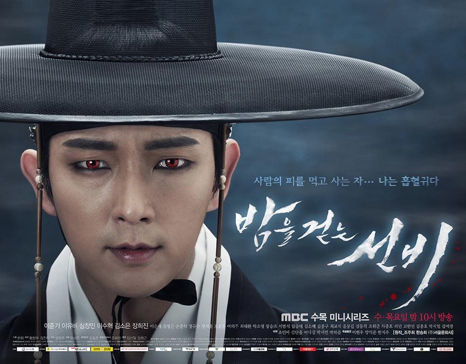 In the final stretch of its promotion cycle, vampire-sageuk Scholar Who Walks The Night has released pretty posters that accentuate its central theme of vampires, myths, magic, romance and angst. The four posters include one with our hero Lee Jun Ki, standing alone with a backdrop consisting of full moon, bats and a lonely night along with fireflies scattered throughout — it gives off the vibe of a vampire fantasy to the T. Another one provides a close glimpse of him, looking really pretty with an eye liner and red eyes to complete his look. Then there is a poster featuring our main couple, in an embrace. Although Lee Yoo Bi cross-dresses as a man, she is looking lovely in her female attire in the poster and they are looking cute. The fourth and final poster includes all main characters and actors in addition to the main pair — Kim So Eun, Changmin, Lee Soo Hyuk — standing in a library. The individual character stills have also been released. I think the contrast between the two females is clear — Lee Yoo Bi looks exuberant and playful while Kim So Eun looks gentle and graceful. All male leads are also showing off their respective character traits. Scholar Who Walks The Night will start airing this Wednesday on MBC. The drama is surely accompanying a lot of things — vampires, cross-dressing, evil supernatural creatures, doppelgänger, mysterious princes but all in all, colour me super-excited!